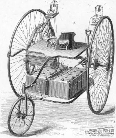 1881年,古斯塔夫•特鲁夫在巴黎的国际电力科技展上面展出了全世界第一台三轮电动汽车,奠定了他电动汽车之父的地位。